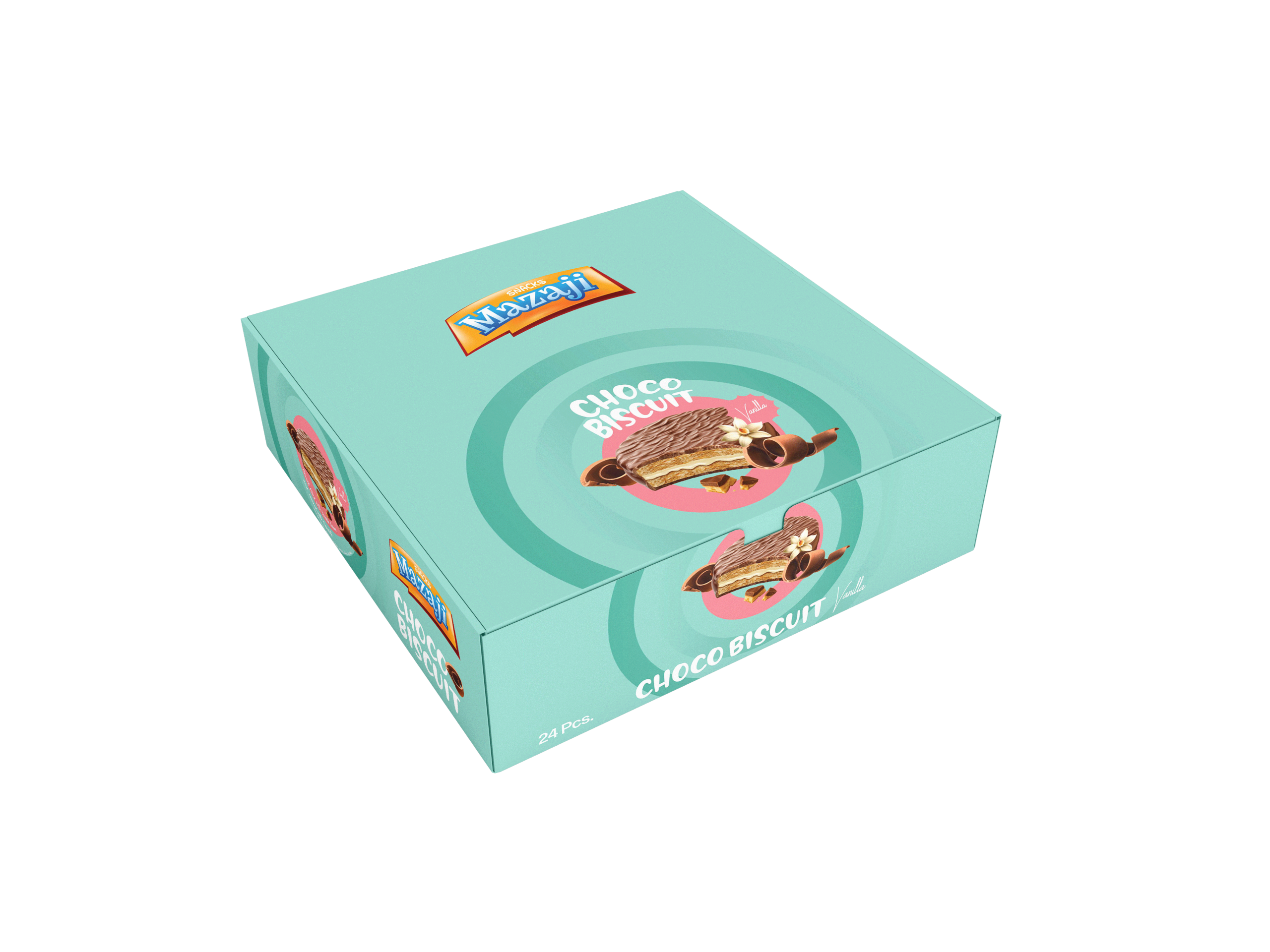 A classic pairing for a delightful break! Enjoy the light and sweet contrast of the Mazaji Choco Biscuit filled with a smooth, aromatic Vanilla Cream. The crispy biscuit base and the creamy center are generously coated in rich chocolate, creating a perfectly balanced flavor profile that brightens your day. Look for the refreshing light blue/turquoise pack!