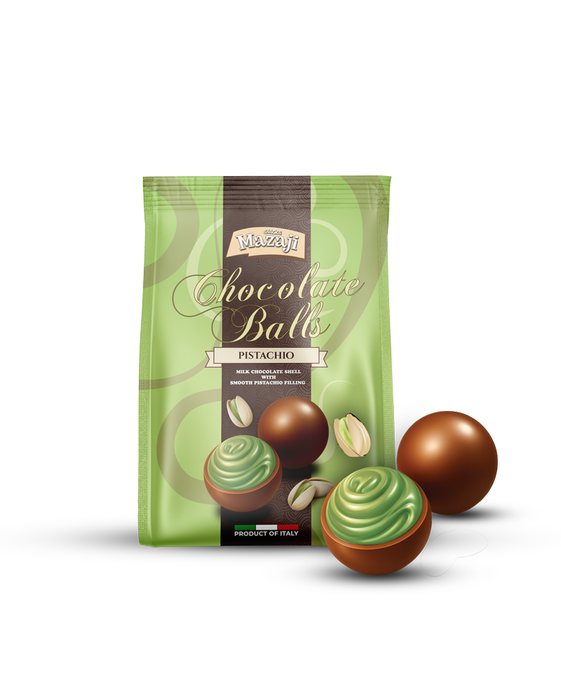 هل أنت مستعد لتجربة تأخذك إلى آفاق جديدة من اللذة؟ عشاق الفستق، هذه اللحظة لكم! نُقدم لكم كرات Mazaji Pistachio، حيث تجتمع عراقة الشوكولاتة الإيطالية مع سحر “الذهب الأخضر” (الفستق الحلبي)، لتخلق توازناً مذهلاً لا يُنسى.