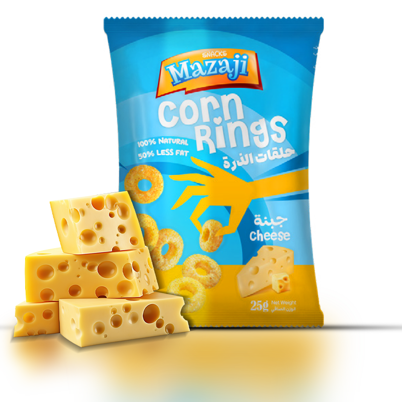 استمتع بتجربة مقرمشة وفريدة مع حلقات الذرة الذهبية بنكهة الجبن الغنية. شكل ممتع وطعم يعشقه الكبار والصغار.