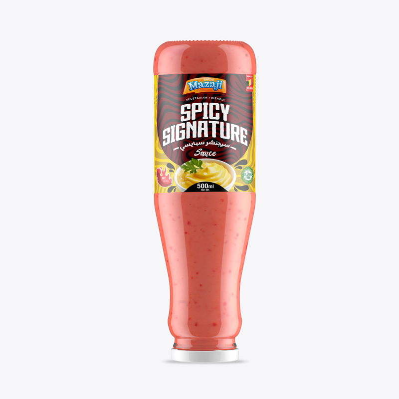 ارتقِ بوجباتك إلى مستوى جديد من التميز مع صوص “سيجنشر سبايسي” من Mazaji. هذا الصوص ليس مجرد إضافة، بل هو توقيعنا الخاص الذي يجمع بين الحرارة الجريئة والتوليفة السرية من التوابل التي تمنح أطباقك هوية لا تُنسى.