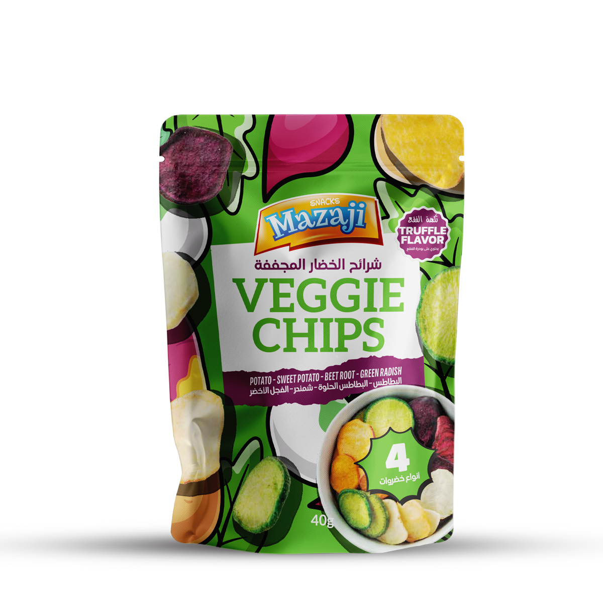 التشكيلة الفاخرة: تعرف على عبوة الـ ٤٠ غرامًا التي تركز على ٤ أنواع مختارة بعناية من الخضروات الجذرية (كالبطاطس، البطاطا الحلوة، الشمندر، والفجل الأخضر) لضمان أفضل توافق مع نكهة الفقع.